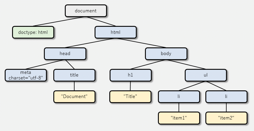 document.getElementById("hoge")みたいなコードを書いた、あるいは見たことがあるんじゃないかと思います。このdocumentのことです。これは要素(htmlとかpとかdivとか)ではなく、オブジェクトというもので最上位のものです。